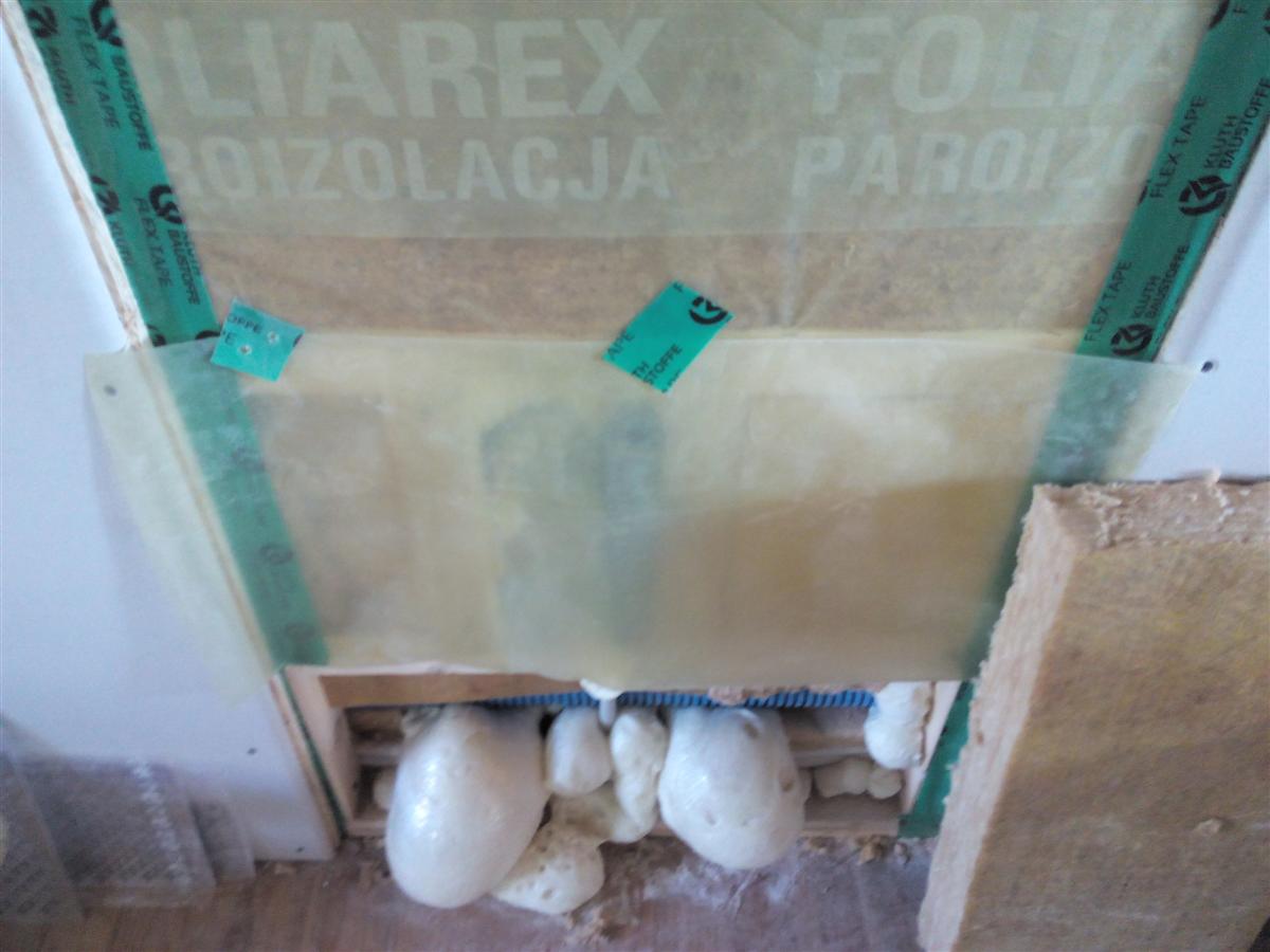 Stefan muss heute lange arbeiten. Mona ist noch krank -> nur Heidi hält die Stellung und versieht den Bereich hinter dem Ofen mit Dämmung sowie Dampfsperrfolie