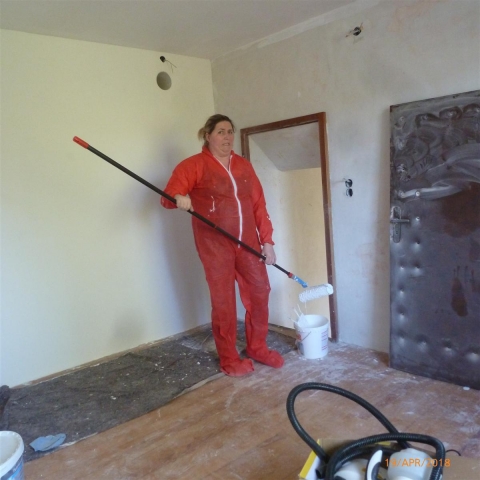 Stefan ist zu Hause wegen Zahn raus, Mona und Heidi verputzen derweil das Schlafzimmer weiter und streichen die Decke neu