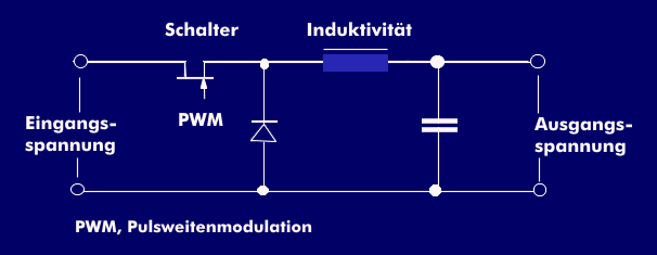 Bildquelle und mehr Infos zur Funktionsweise von Step-Down Konvertern -> Abwärtskonverter @ itwissen.info