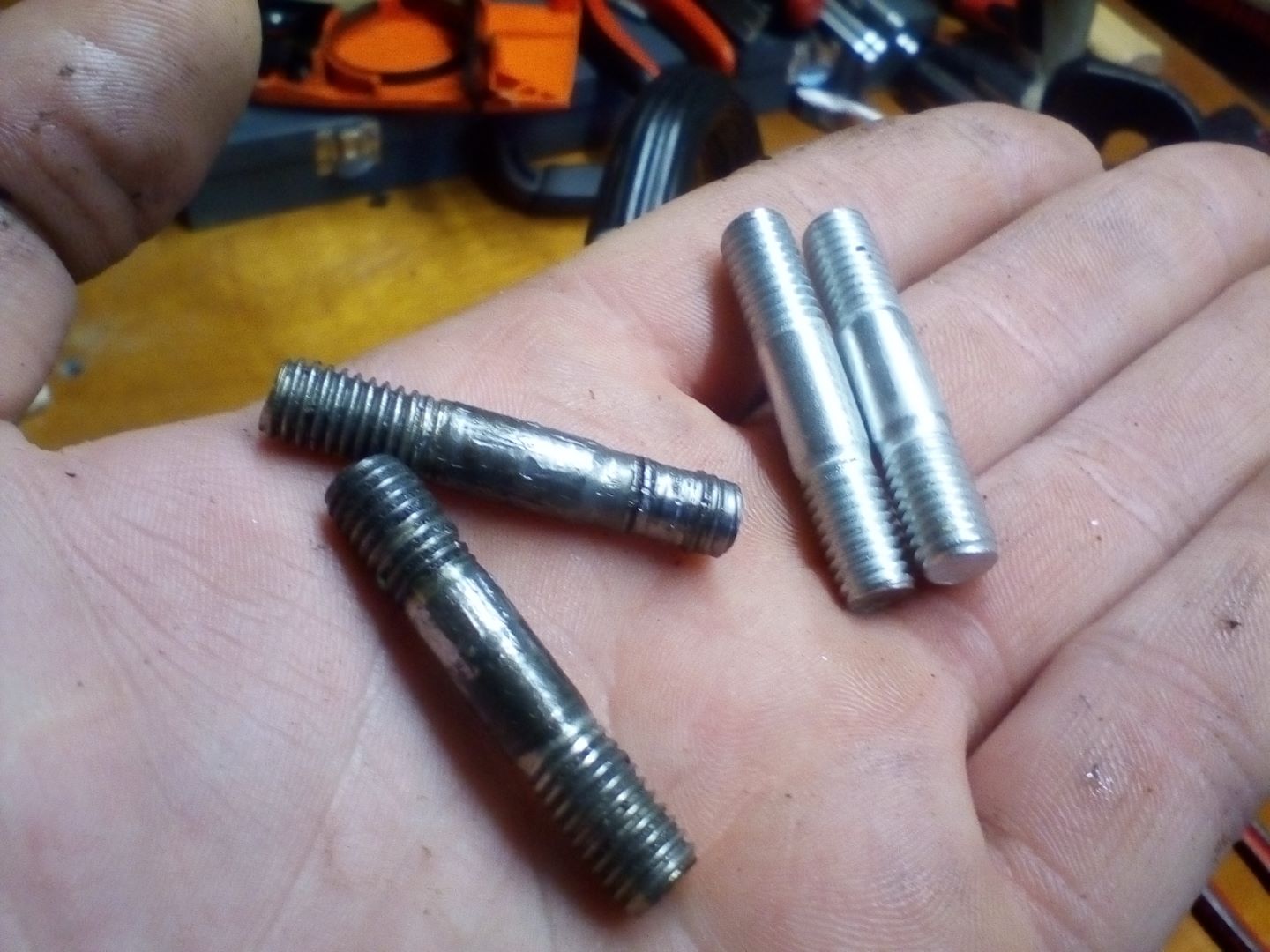 Nach langer Benutzung oder wenn man die Schwertmuttern mit Gewalt zu fest anzieht sehen die Stehbolzen dann irgendwann so aus
