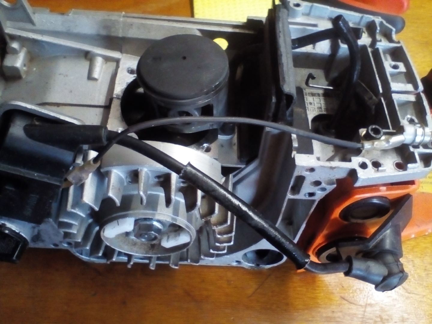 das Kabel zum Start-Schalter kann man abziehen, das Kabel vom Zündkerzenstecker nicht