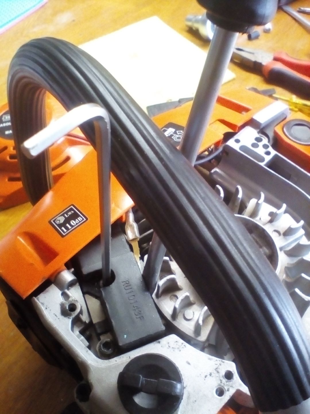 Wenn die Kettensäge Zündaussetzer hat oder garnicht startet, obwohl die Zündkerze in Ordnung ist, dann ist entweder der Starthebel mechanisch kaputt (das sieht man) oder das Zündmodul mit der darin verbauten Zündspule.