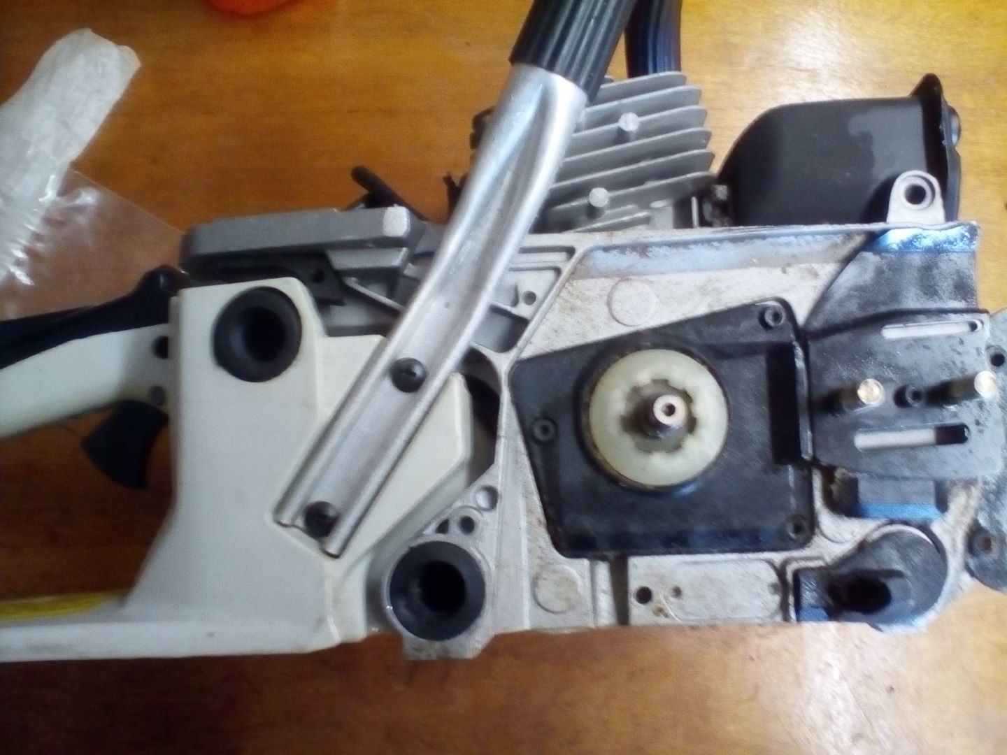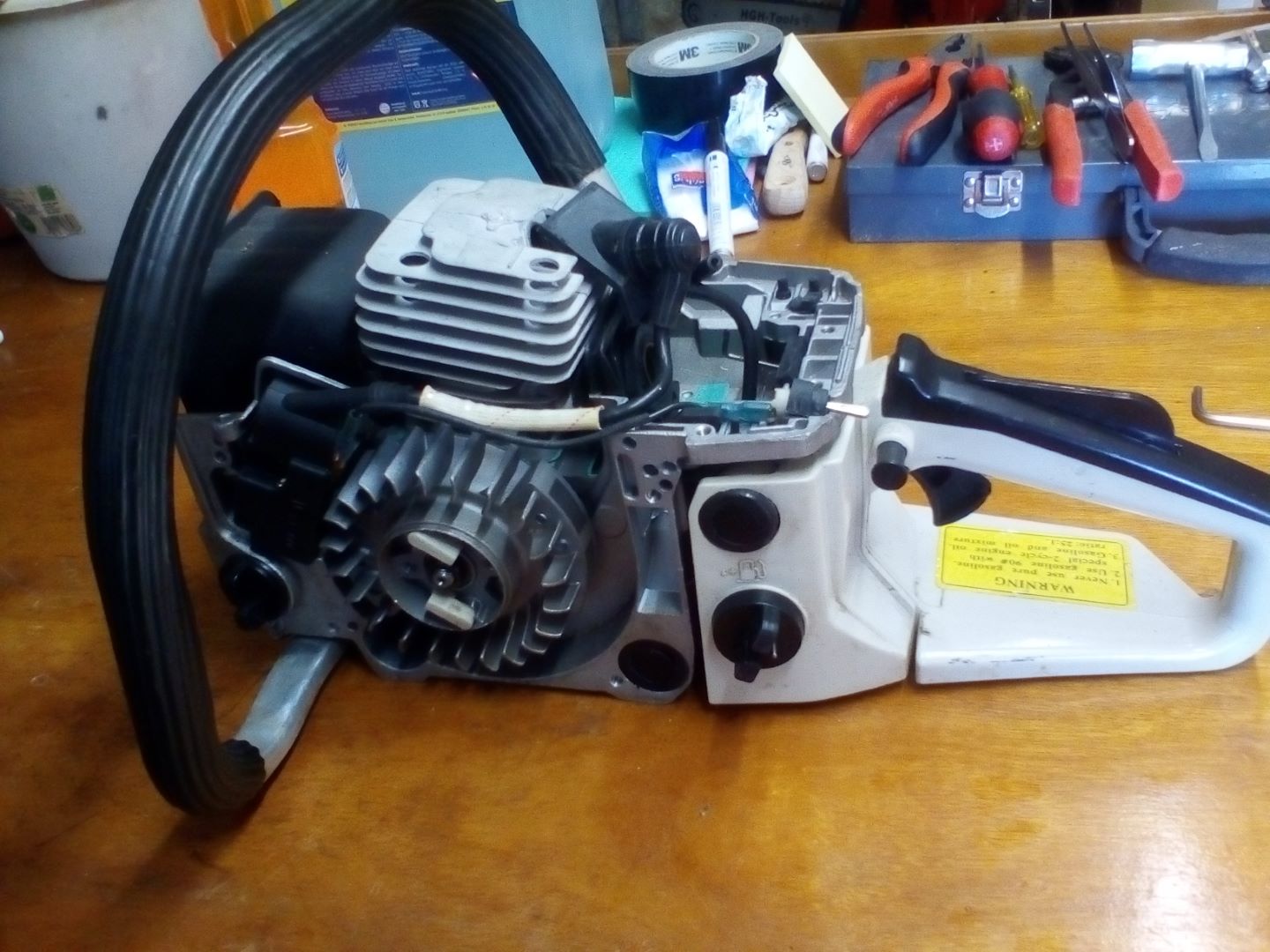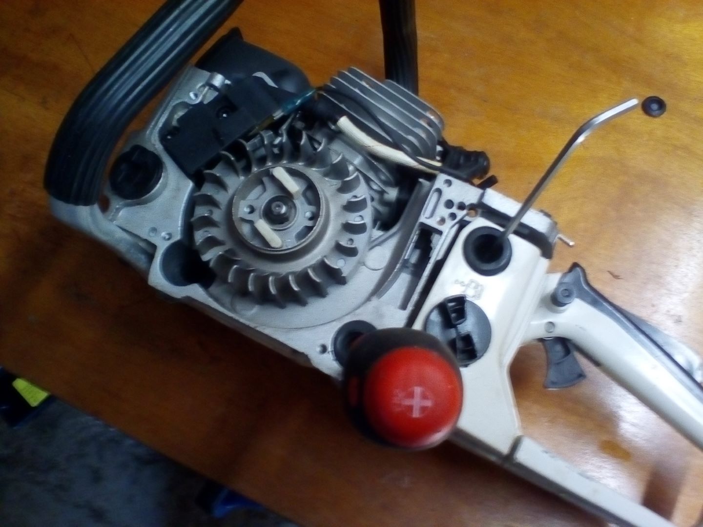 Was passiert hier? trennen von Plastikgehäuse (Rumpf, bestehend aus Tank und Griff, das ist eine Einheit) vom Kurbelwellengehäuse und dem Motor.