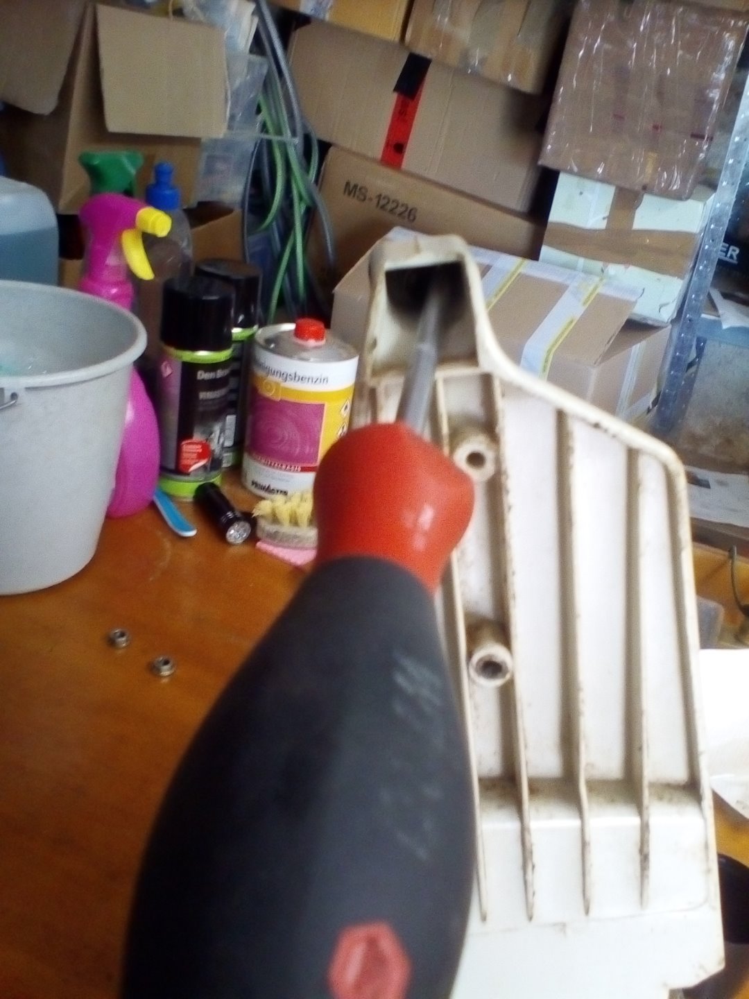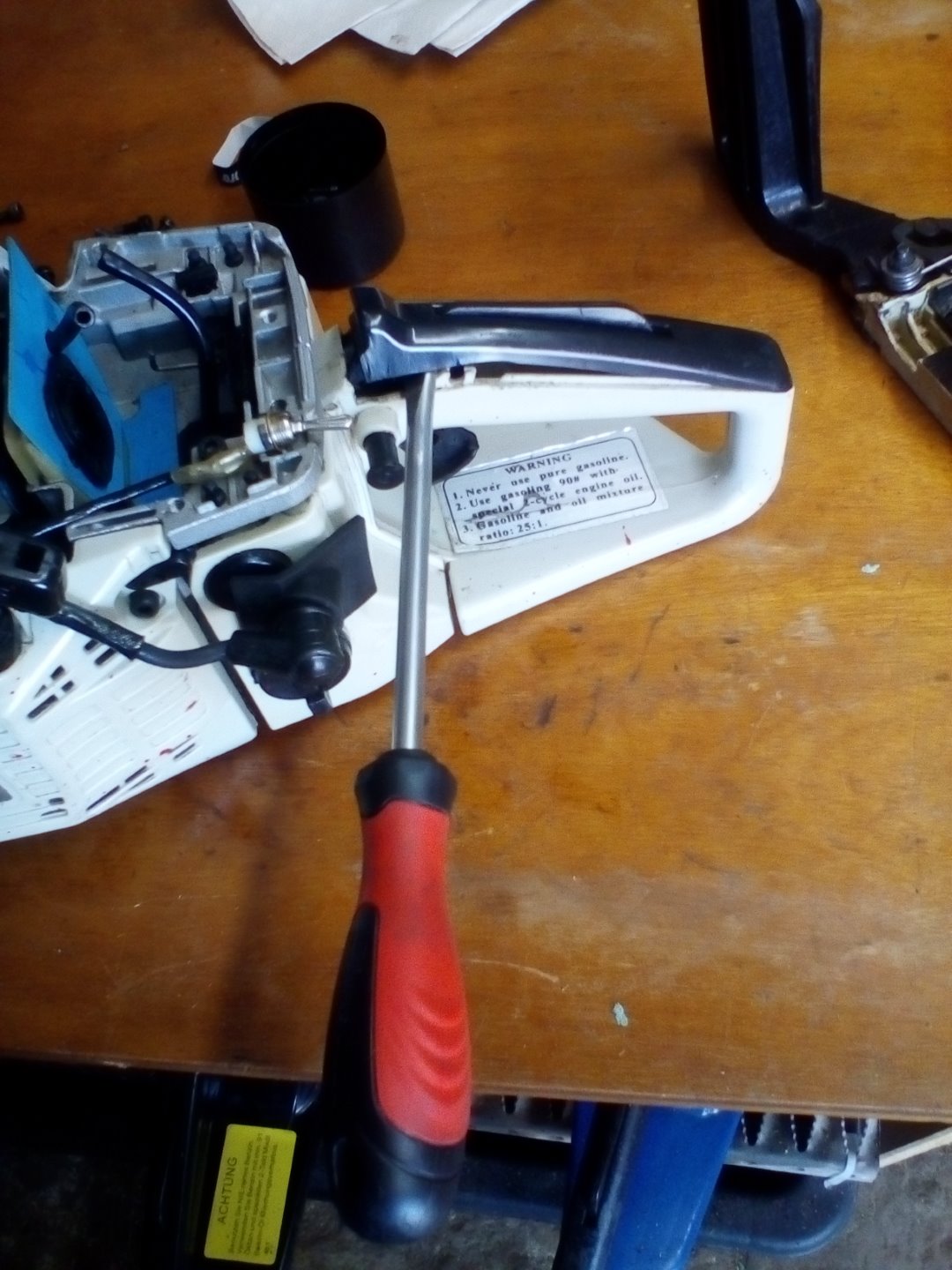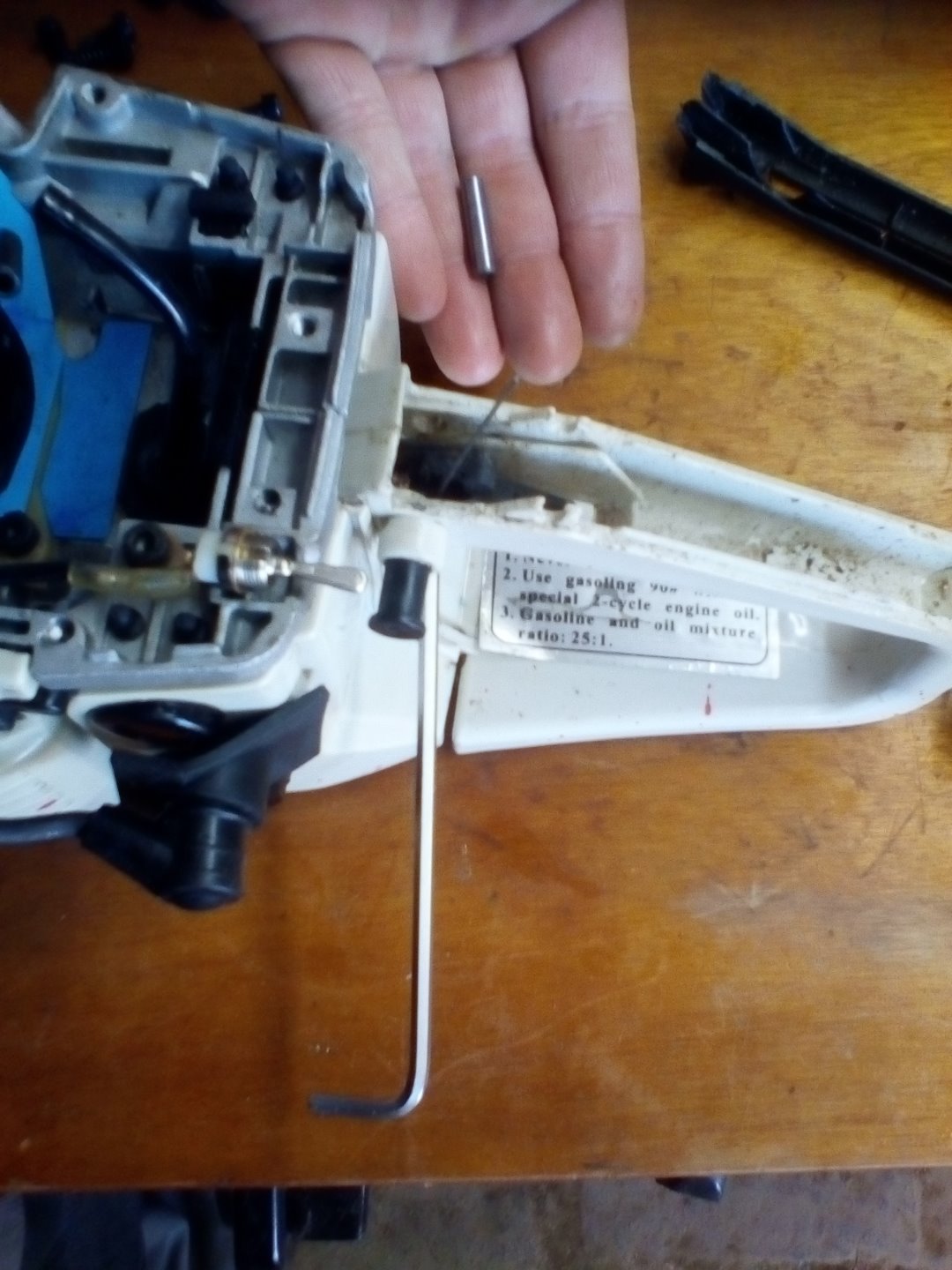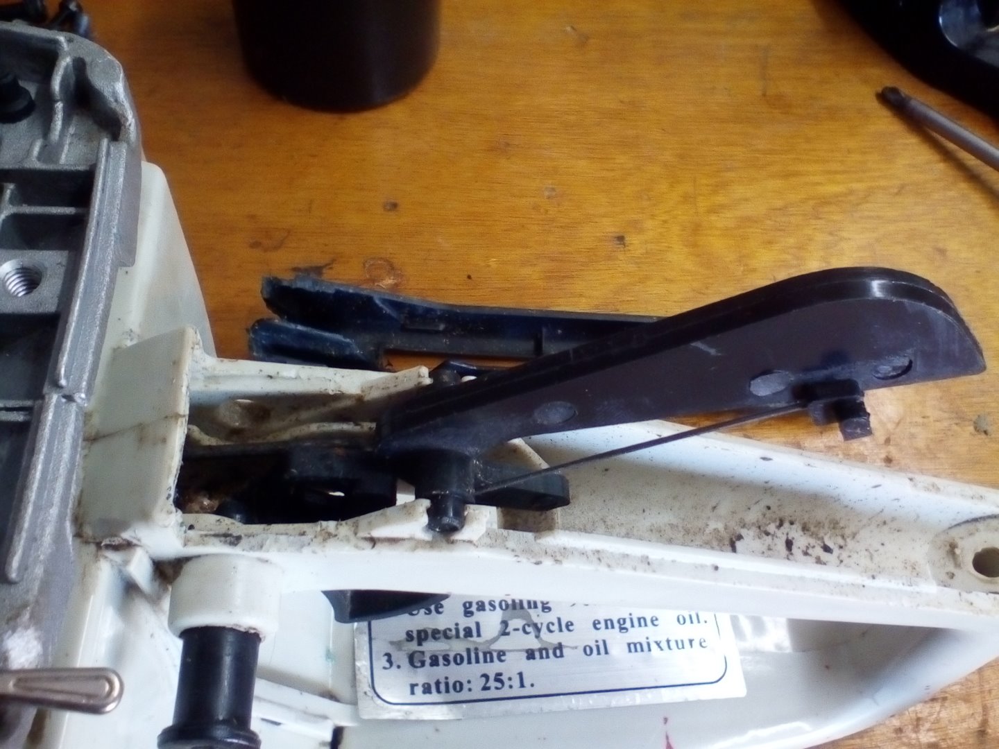 beim Zusammenbau zuerst die Rückstellfeder an den Gashebel ran, den Gashebel in das Griffgehäuse einsetzen, Spint wieder einschieben, Gasgestänge einhängen