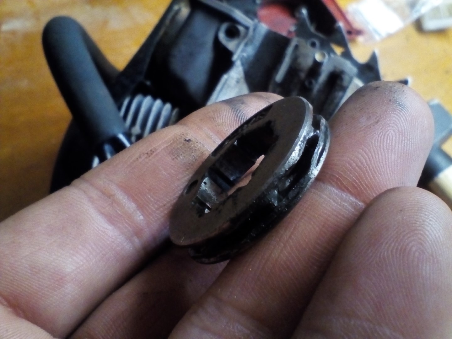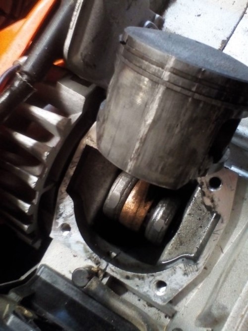 | Kette läuft im Stand mit und Motor geht aus, wenn man Kettenbremse zu macht | Kupplungs-Nadellager (Trommellager) ist fest und nimmt Kupplungstrommel + Kettenrad bzw. Ritzel daher immer mit |
