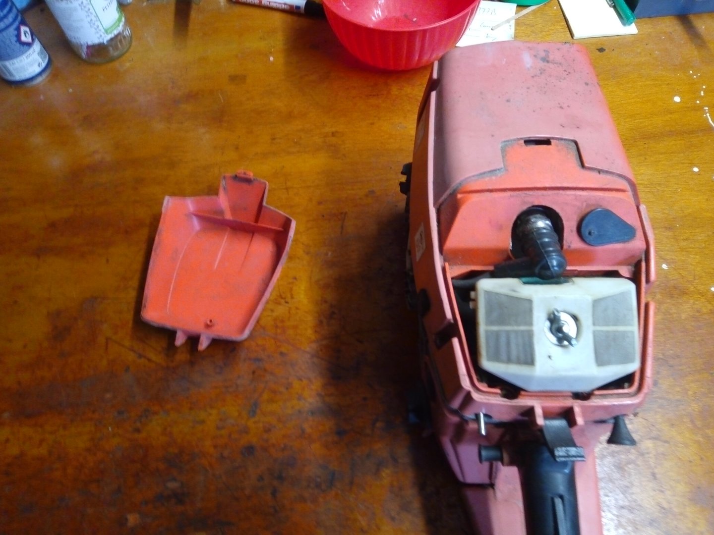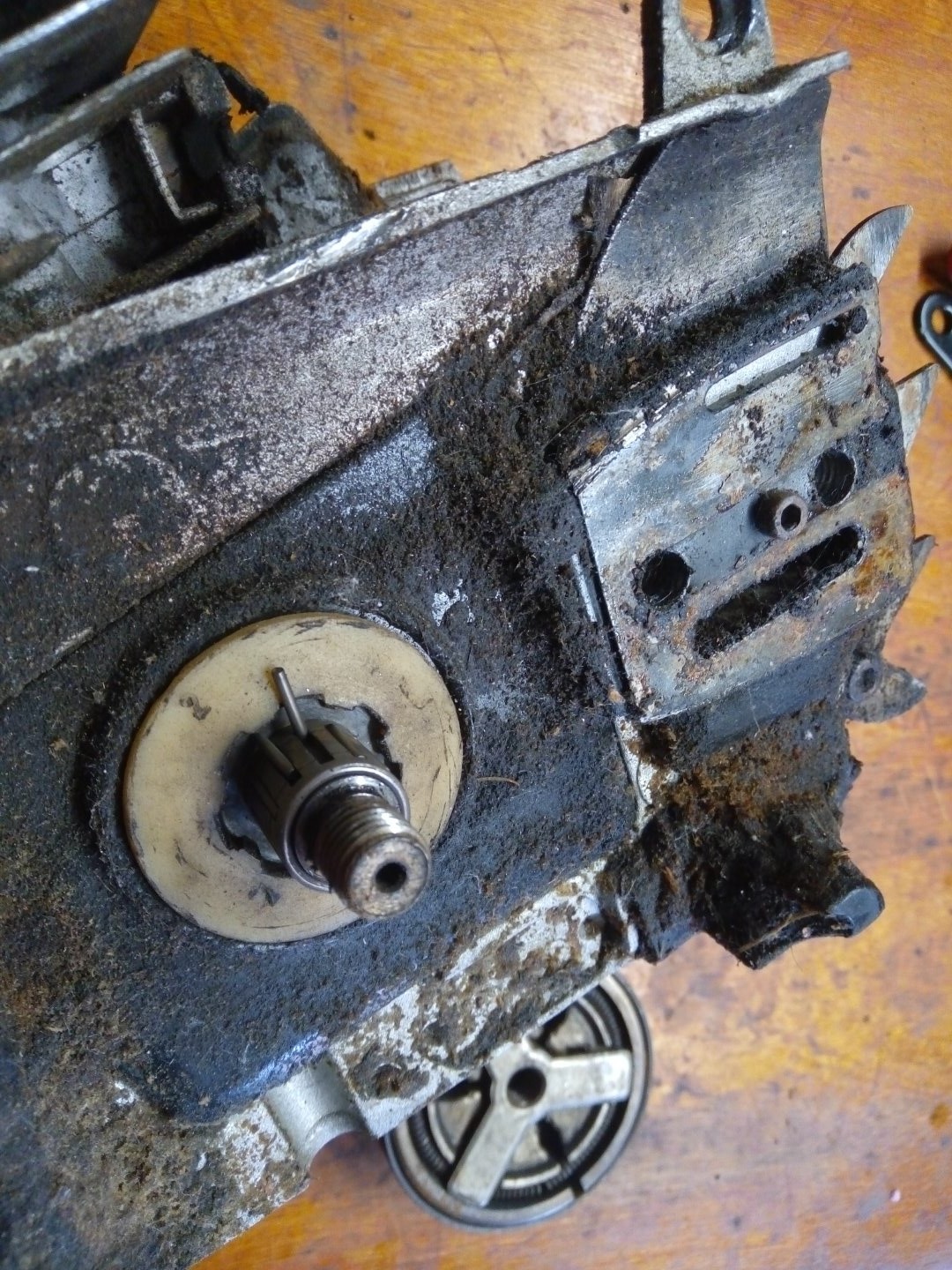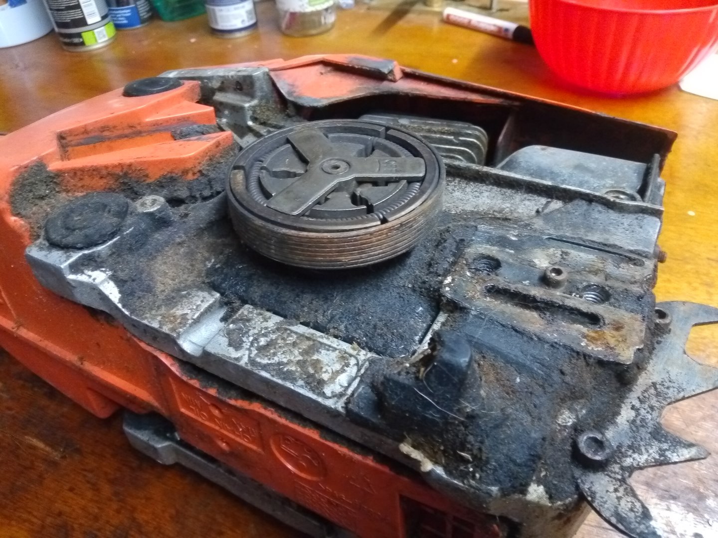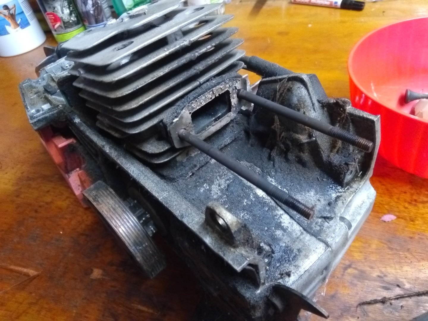 danach kam die Motorsäge wieder auf die Werkbank und wurde zerlegt, um einen neuen Zylinderkopf einzubauen